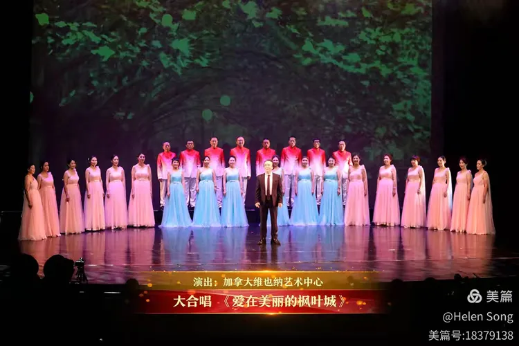 晚会由维也纳艺术中心的大合唱《爱在美丽的枫叶城》拉开帷幕。这首作品是张振国老师今年全新创作,旋律清新优美,饱含深情,表达了海外华人对第二故乡——加拿大的热爱与认同。合唱团成员用饱满的情感、层次分明的歌声,为整场晚会注入温暖动人的开端。
