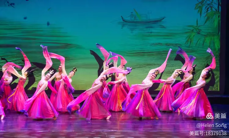 舞蹈团这次表演的是由陈功老师重新编排的汉唐古典舞《盛世宴歌》。演员们舞姿婉转,长袖翩翩,呈现了盛世大唐的恢宏与典雅。舞台如画,情景如梦,观众仿佛穿越千年,沉醉在这场婀娜与乐声交织的盛宴中。