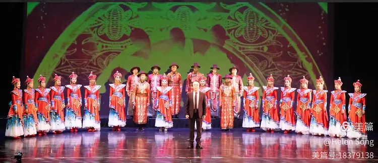 晚会尾声,维也纳艺术中心演绎了张振国老师改编自蒙古民歌《祝酒歌》的大合唱《我敬朋友一杯酒》,欢快、奔放的旋律将观众情绪推向高潮。合唱中融入了一段富有民族特色的哈达舞蹈,为歌曲增添灵动色彩,激情与欢乐共融,全场观众报以热烈掌声。